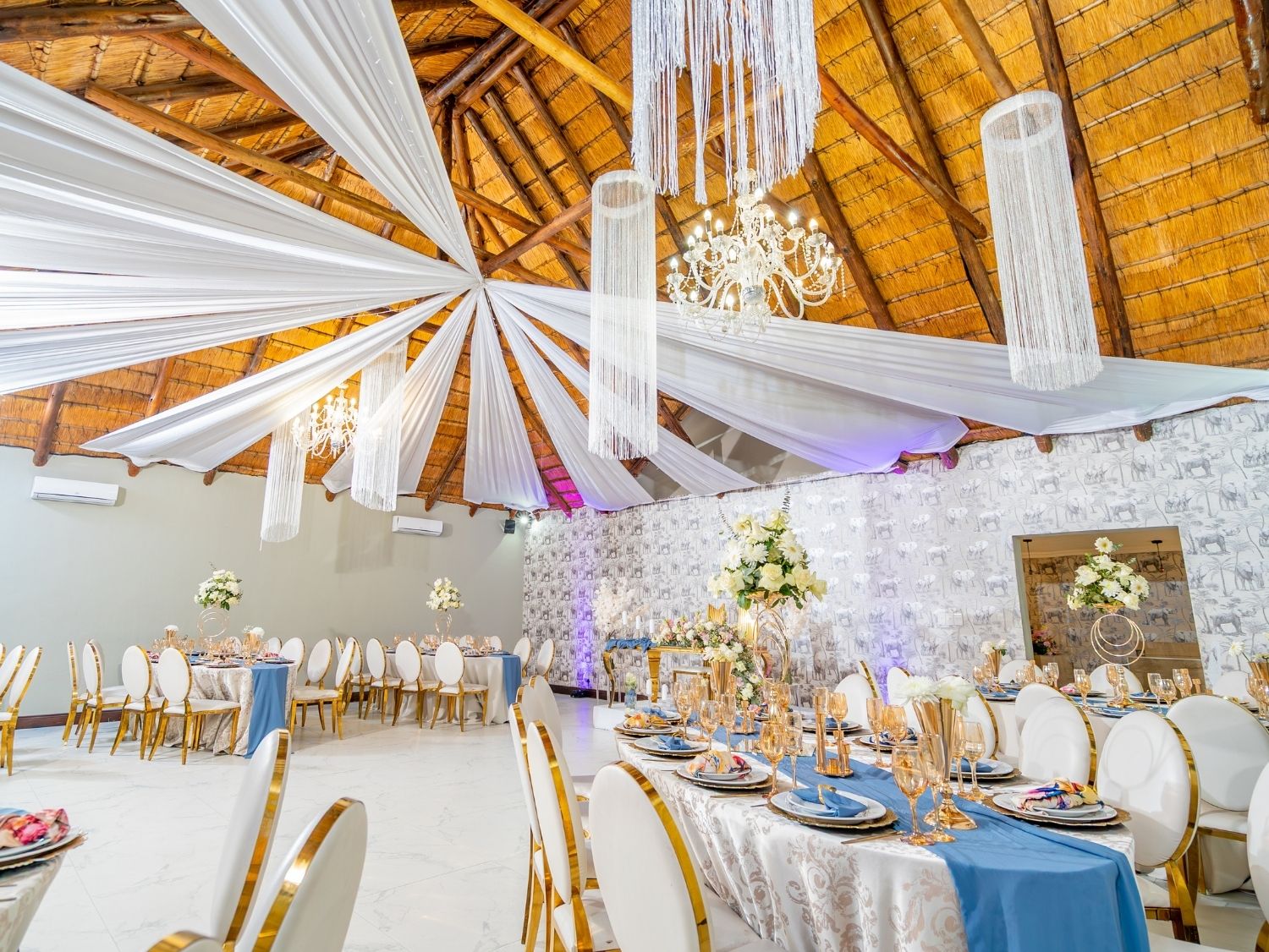 With all its sentimentality intact, like a grand dame, the thatch architectural style and light marble tiled floors, delighting in a neutral colour palette, causes the Elephant Hall to be sufficiently versatile for any wedding style. It is light and airy with giant windows enjoying magnificent garden and pond views. The space has been redefined with a modern bar area and a separate banqueting service station.
